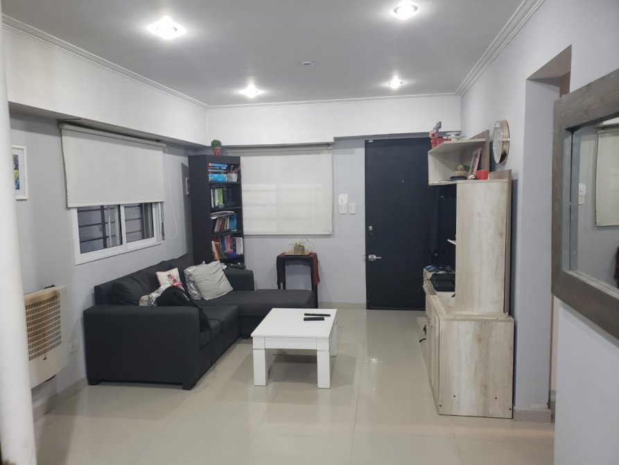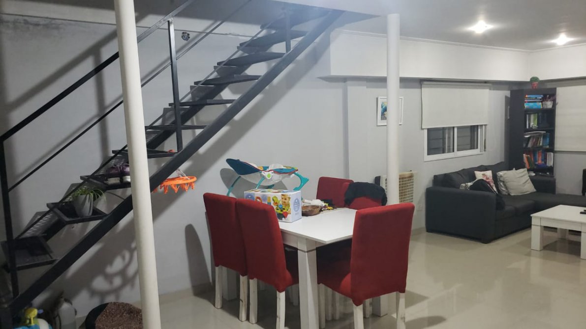 planta baja: living comedor integrado, barra desayunadora hacia cocina.