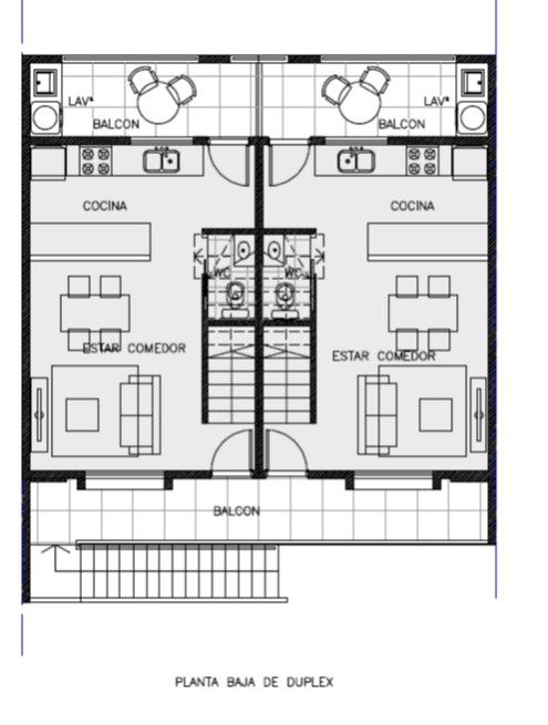 - PLANTA BAJA: LIVING COMEDOR CON COCINA INTEFRADA. TOILETTE. LAVADERO SEMI-CUBIERTO. COCHERA CUBIERTA Y PATIO CONTIGUO QUE DA POSIBILIDAD DE SEGUNDA COCHERA.