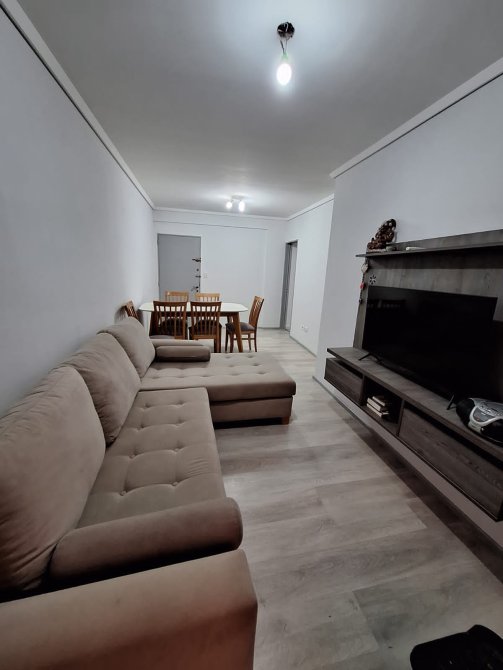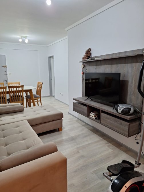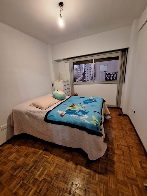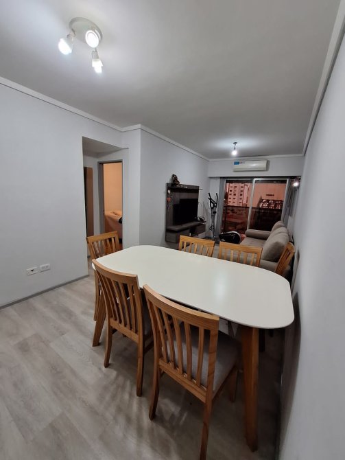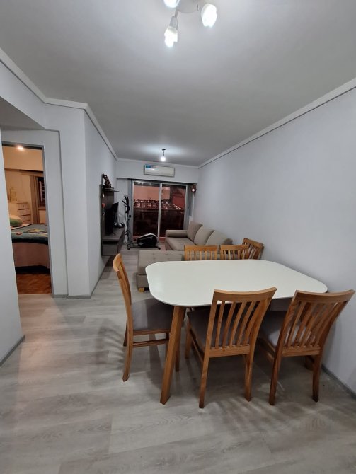Living comedor con puerta balcón y persiana de madera. Cuanta con aires acondicionado frío-calor.