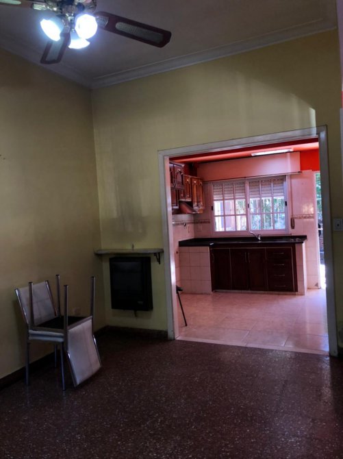 La casa cuenta con un amplio living con ventana a la calle y hogar a gas, comedor y cocina con bajo mesada y alacena, ventana y salida al patio.