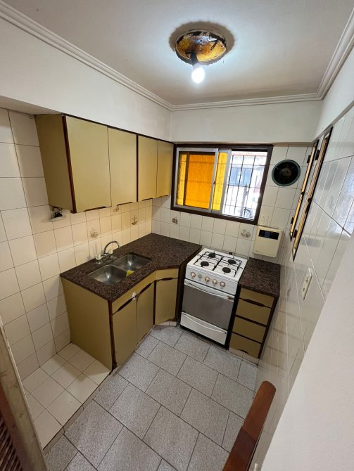 Cocina tipo kitchenette separada con artefacto de cocina y ventana hacia el exterior,