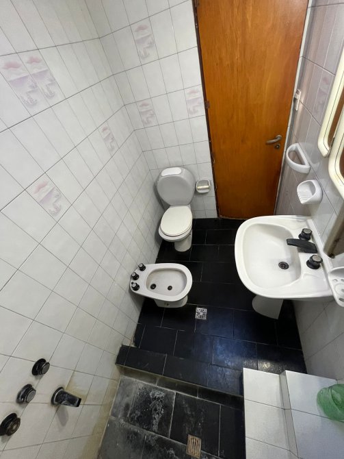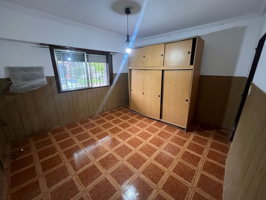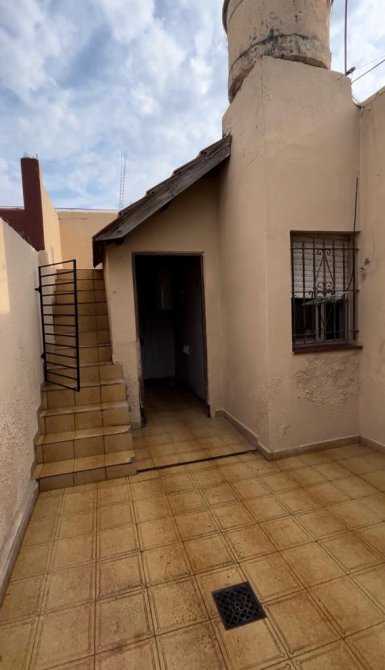 Patio trasero privado con acceso a un lavadero cubierto y terraza.