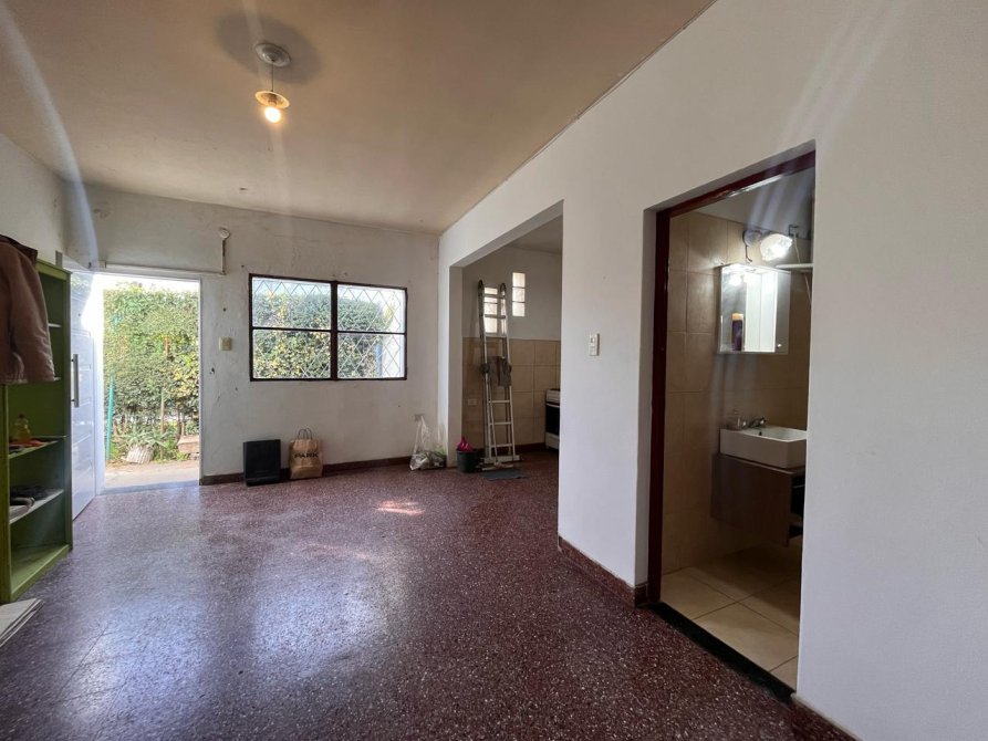 CASA TIPO DEPTO AL FRENTE, LIVING-COMEDOR, BAÑO COMPLETO, SECTOR DE COCINA CON BAJO MESADA, 2 DORMITORIOS AMPLIOS, SE PODRIA GENERAR COCHERA, ELIMINANDO EL DORMITORIO AL FRENTE, TAMBIEN SE PUEDE UTILIZAR COMO DEPOSITO AL FRENTE Y VIVIENDA TRASERA. PRECIO LIBRE DE GASTOS