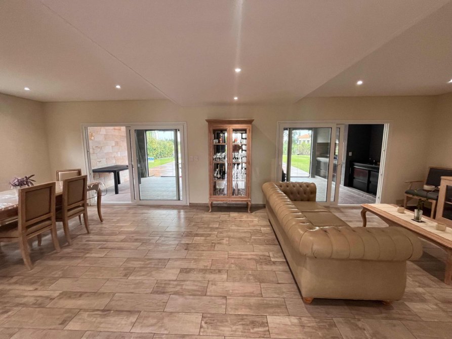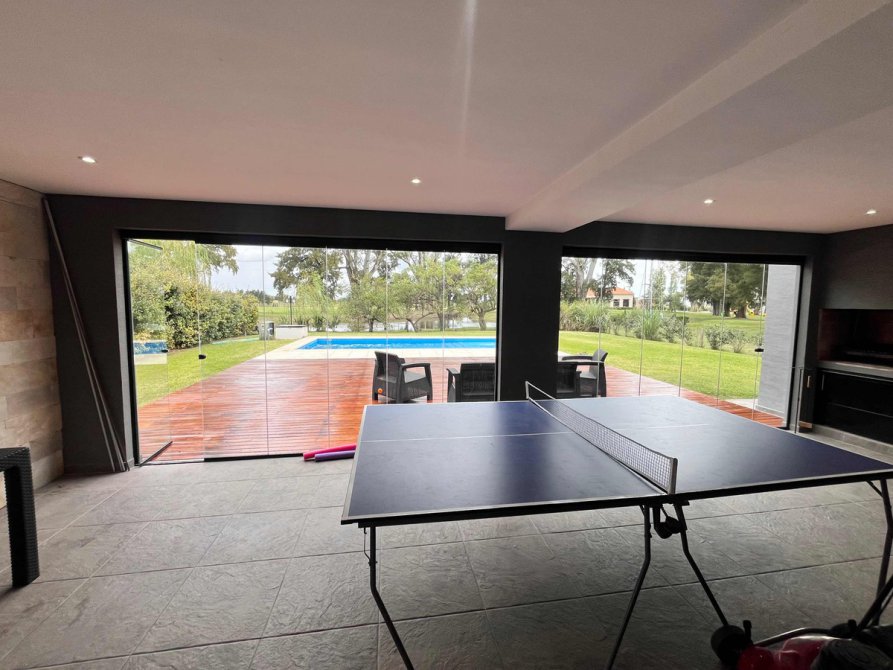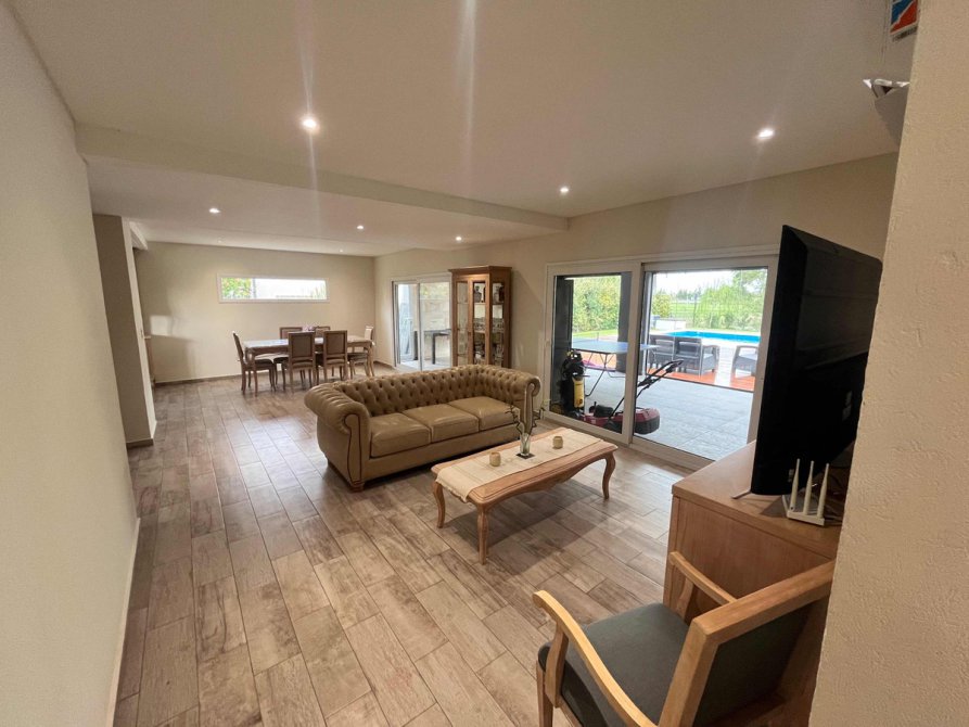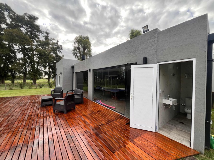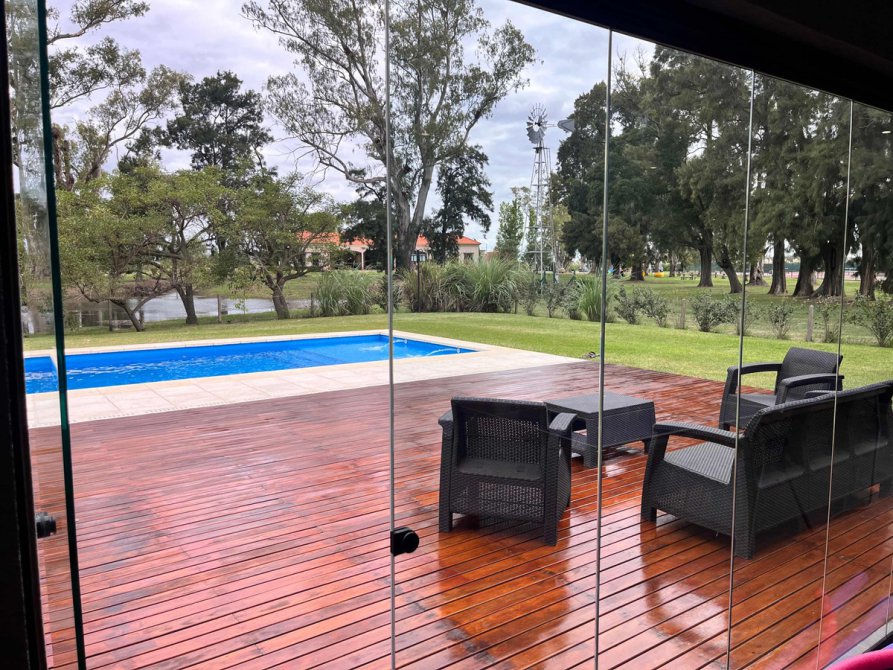 Deck de madera a continuación de la galería hasta el solárium, pileta climatizada con caldera eléctrica .