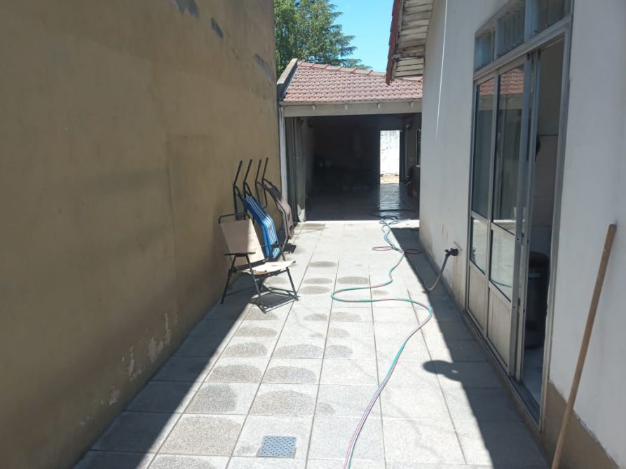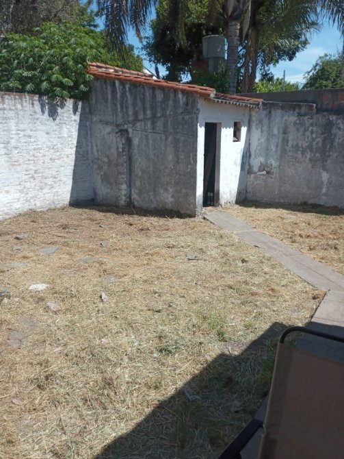 Jardin trasero con galpon chico y espapacio tipo quincho con un segundo baño completo.