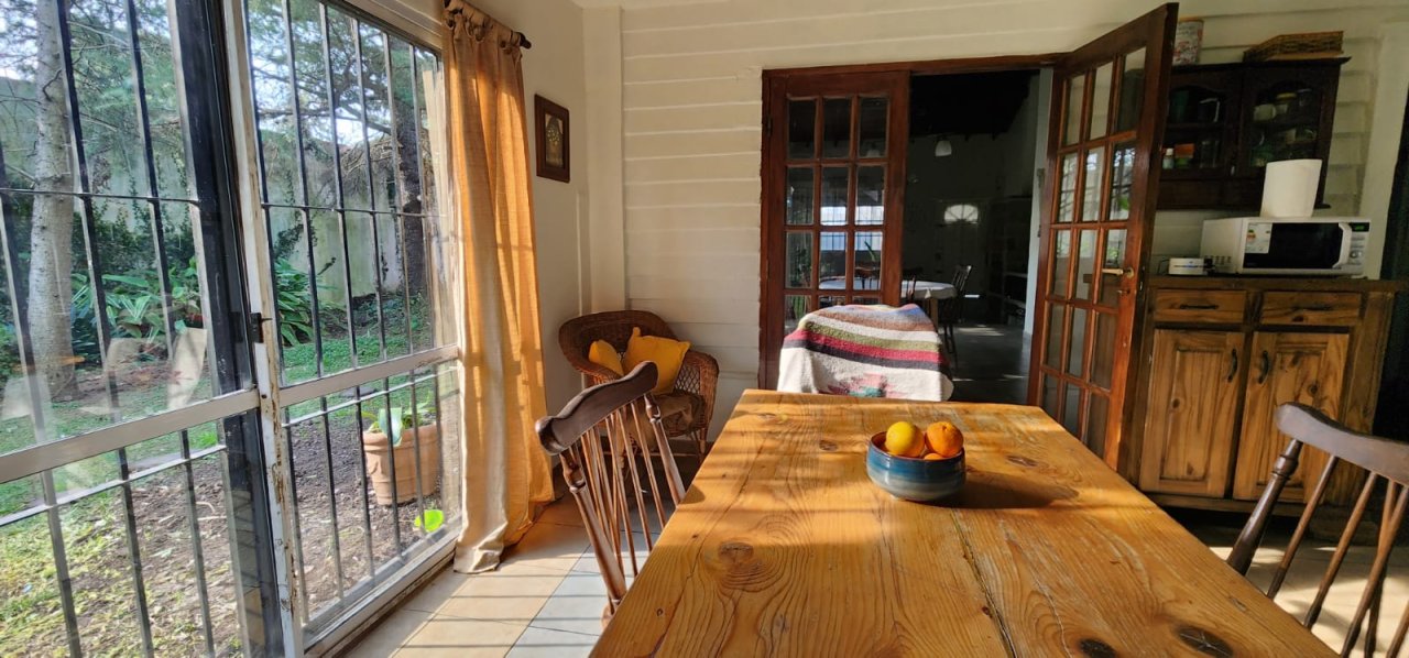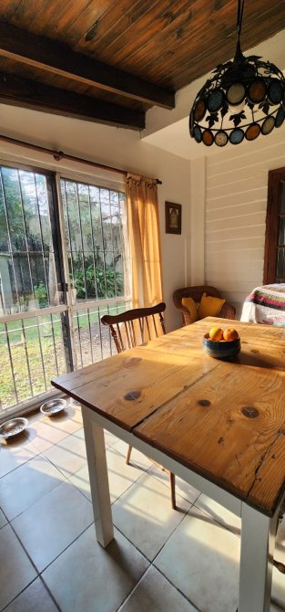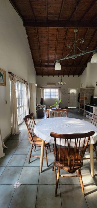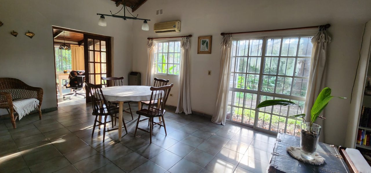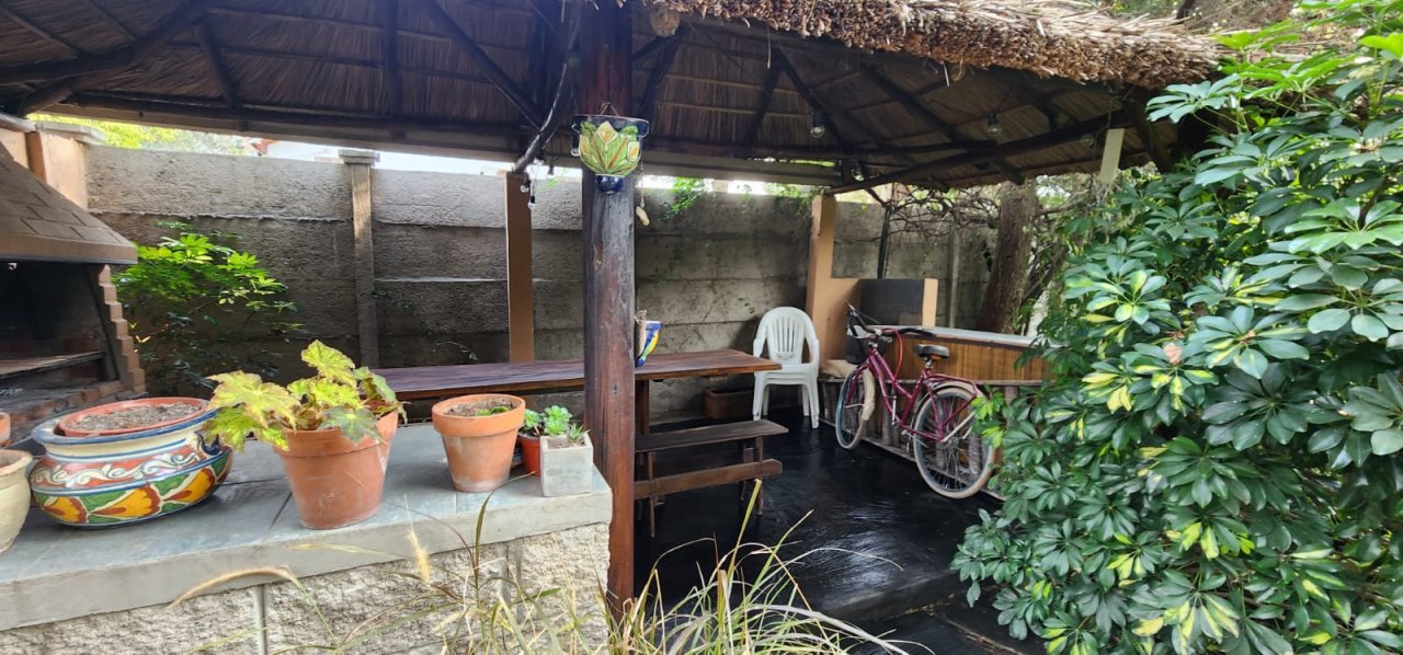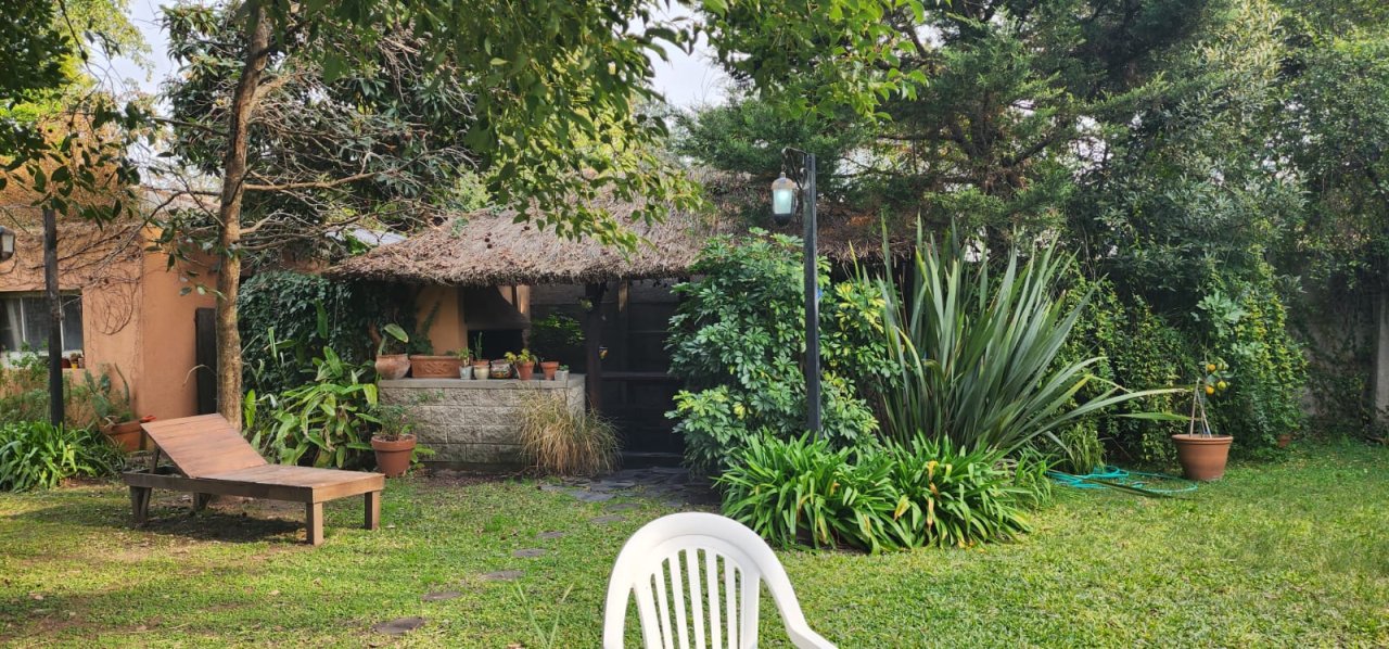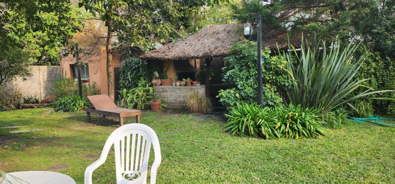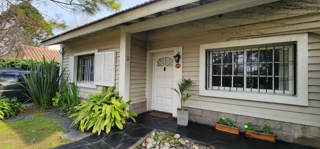 EXCELENTE CHALET DESARROLLADO EN UNA PLANTA. LIVING AL FRENTE EN DESNIVEL CON AMPLIO HOGAR, CON COMEDOR INTEGRADO, DORMITORIO PRINCIAL AL FRENTE CON AMPLIO PLACARD EMBUTIDO Y VENTANAL AL FRENTE, DOS DORMITORIOS MAS CON VENTANAS INDEPENDIENTES AL FONDO. BAÑO AMPLIO TOTALMENTE INSTALADO CON ACCESORIOS FUNCIONANDO, SECTOR COCINA, CON MUEBLE DE BAJO Y ALACENA, GALERIA TRASERA TIPO JARDIN DE INVIERNO. LAVADERO CUBIERTO. PARQUE LIBRE TRASERO, CON ACCESO A QUINCHO CON BAÑO AUXILIAR TOTALMENTE INSTALADO, PARQUE LIBRE LATERAL AMPLIO CON MUCHA FORESTACION.