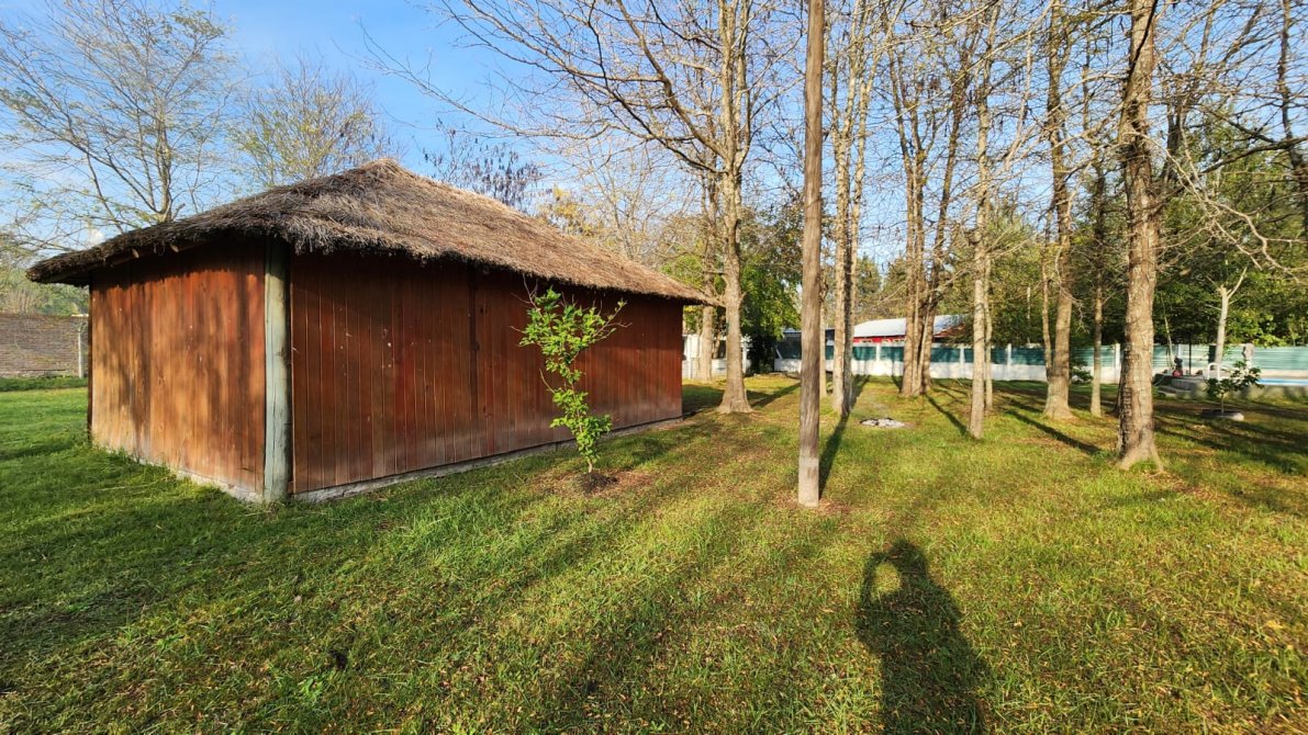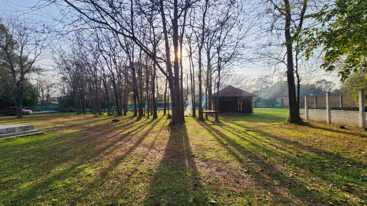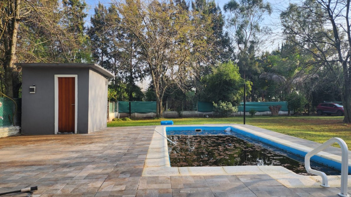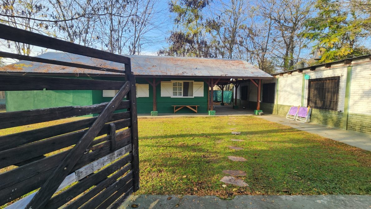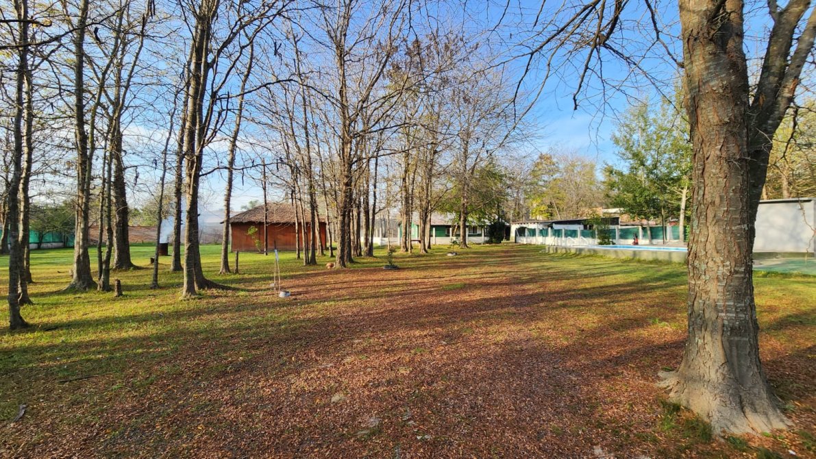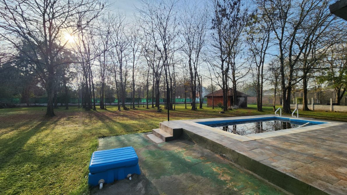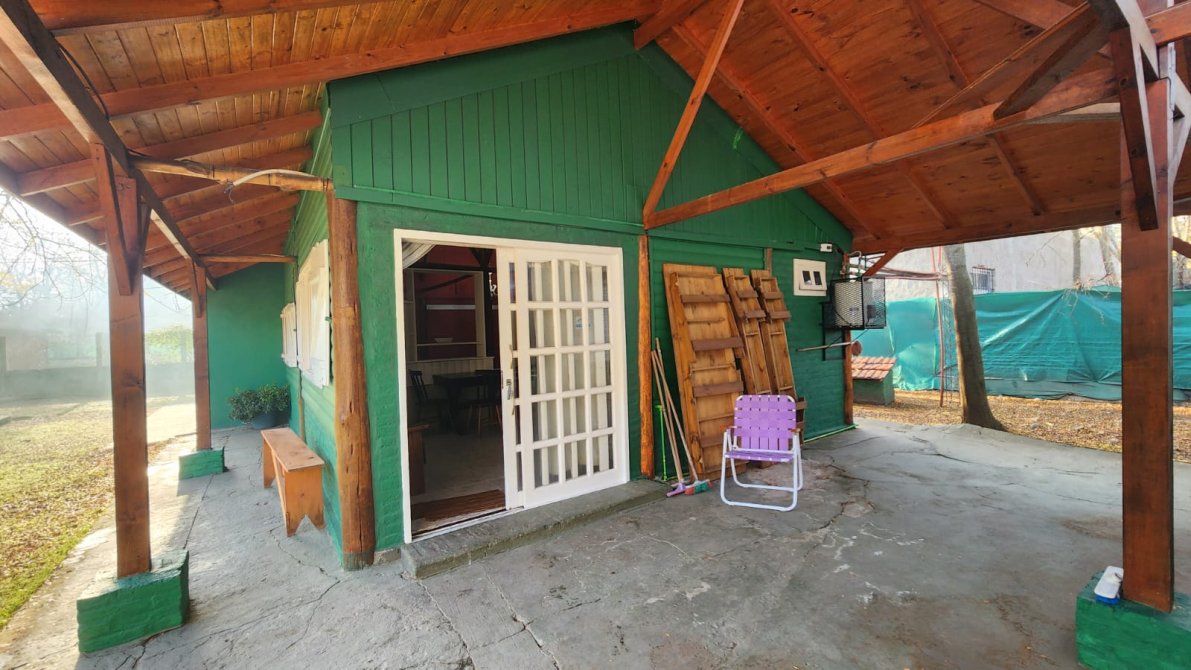 EXCELENTE PROPIEDAD PREPARADA PARA VIVIENDA PERMANENTE O FIN DE SEMANA, AMPLIO PARQUE ARBOLADO, TOTALMENTE CERCADO CON ALAMBRE OLIMPICO, CASA PRINCIPAL: 2 DORMITORIOS AMPLIOS, BAÑO COMPLETO, LIVING, COCINA-COMEDOR CON SALAMANDRA, GALERIA AMPLIA AL FRENTE, TODA LA PROPIEDAD DISPONE DE TIRANTERIA A LA VISTA EN 2 AGUAS. AMPLIO SALON DE USOS MULTIPLES: SALIN DE MATERIAL CON TECHO DE CHAPA A UN AGUA, DISPONIBLE PARA VARIOS DESTINOS, (QUINCHO CHERRADO, SALON, USO COMERCIAL, ETC), PISCINA DE MATERIAL CON SOLARIUM Y BAÑO EXTERIOR.
