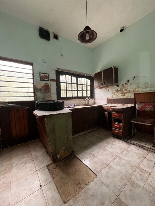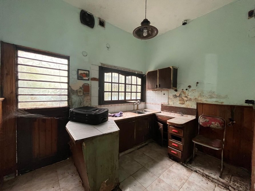 Cocina con bajo mesada en L, cuenta con ventanas y acceso al patio trasero privado, lo que lo hace luminosa.