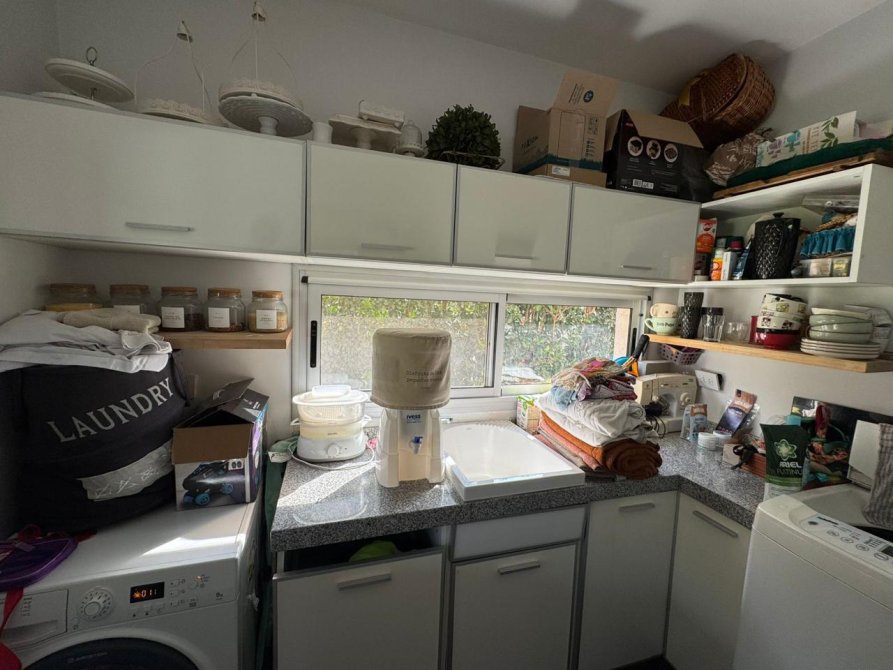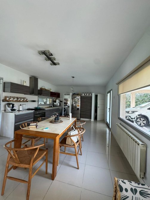 Cocina comedor integrada, totalmente equipada con mucha luz natural. Cuenta con un acceso por puerta de servicio a la cochera con capacidad para dos autos.
