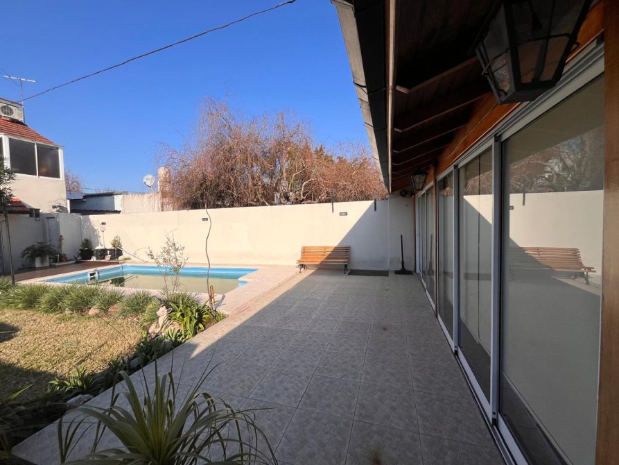 Fondo libre con pileta y jardin parquizado. Hermoso y amplio quincho completo con parrila y baño.