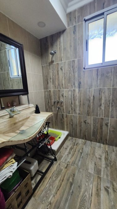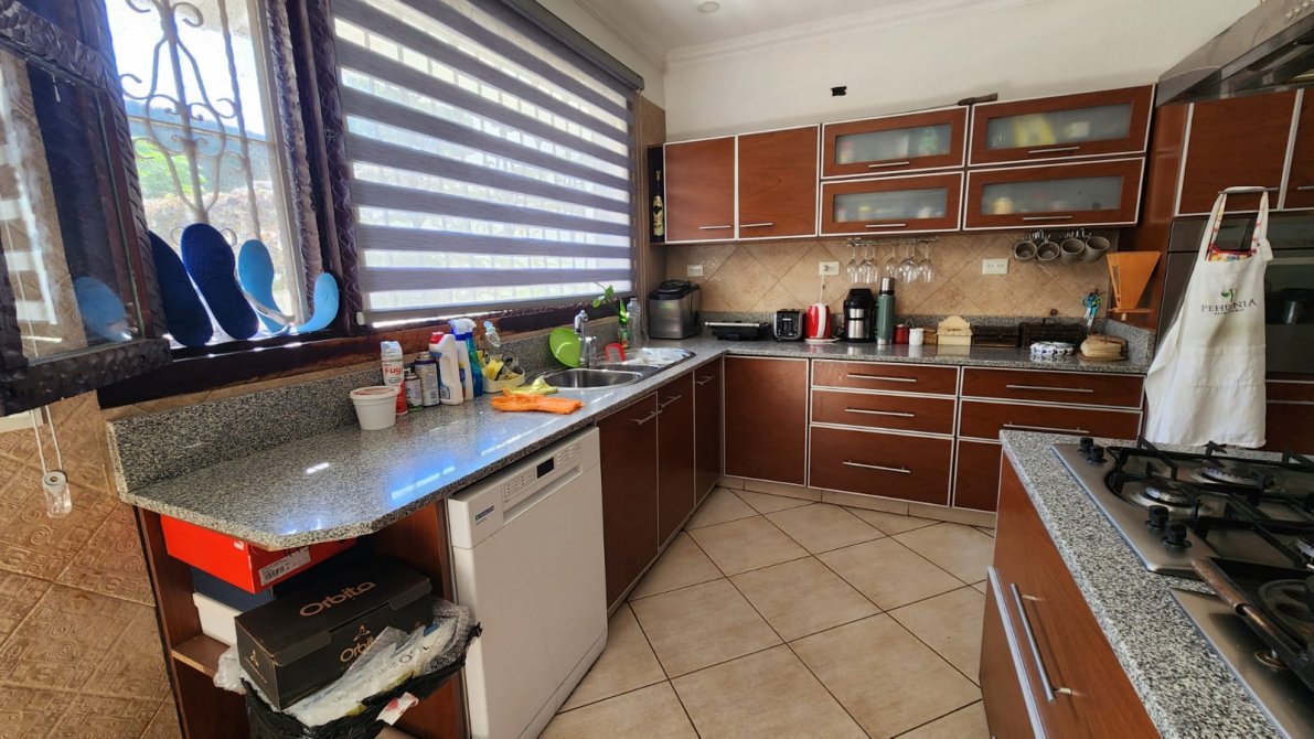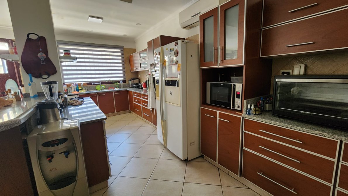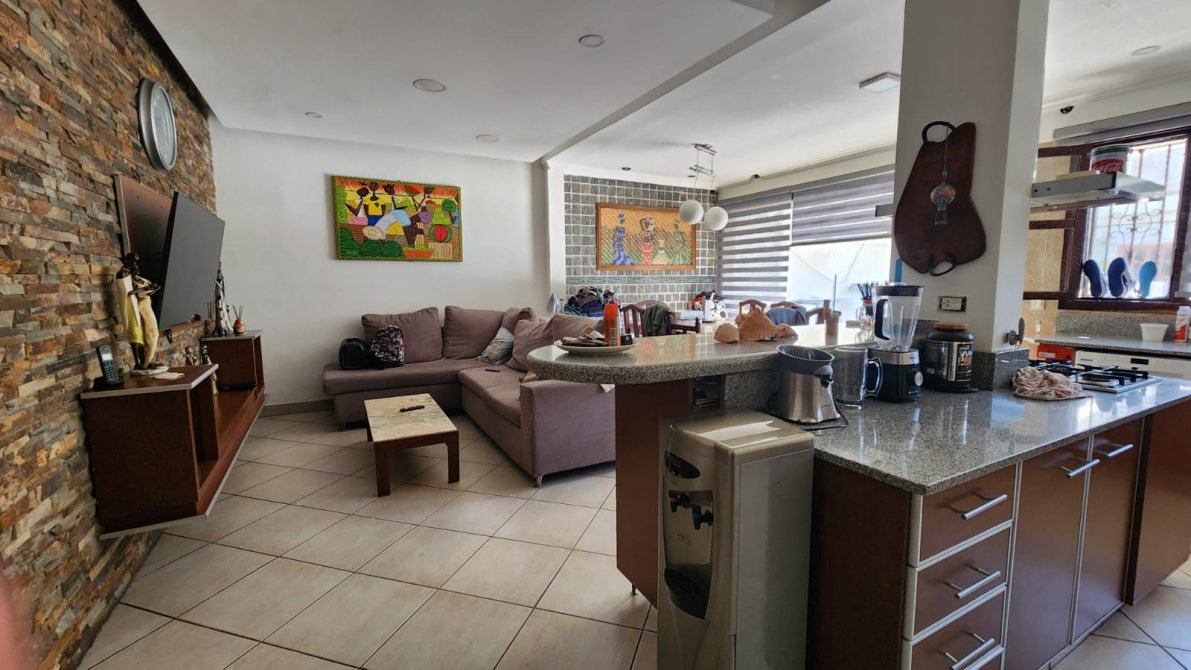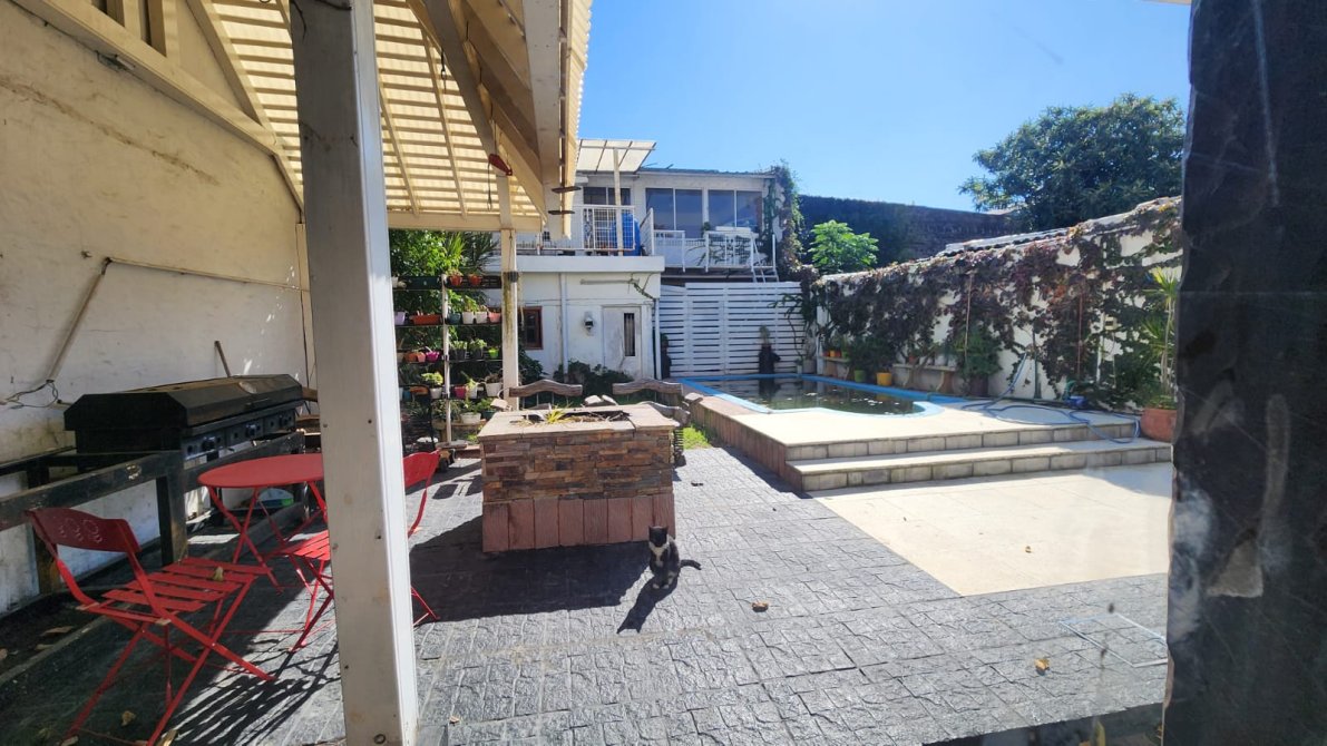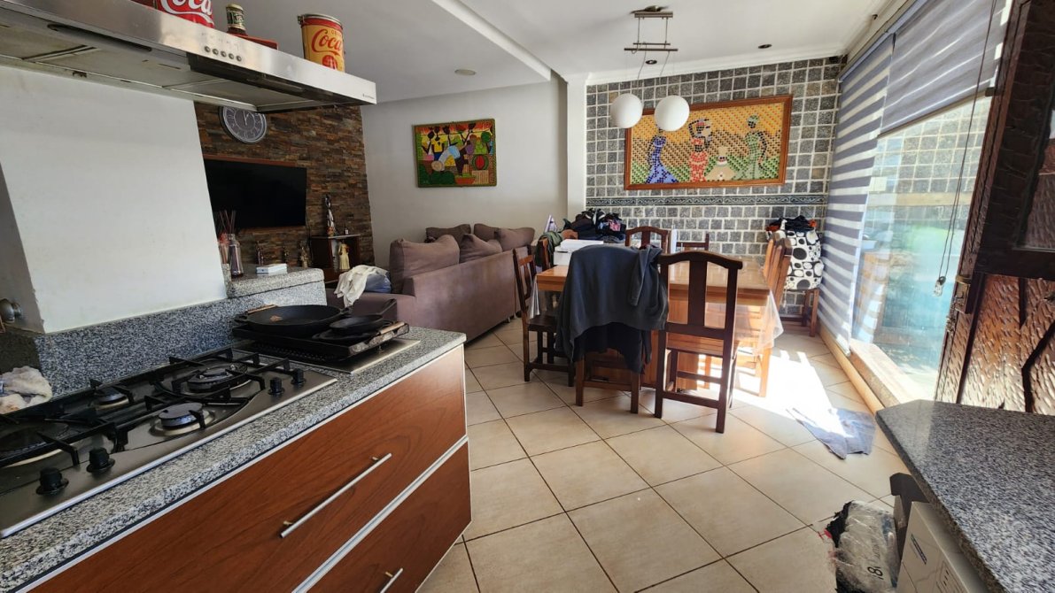 PLANTA BAJA: living en desnivel, sector escritorio, baño completo, lavadero amplio, cocina comedor amplia con muebles de bajo y sobre mesada, isla, y puerta balcon al fondo, quinco trasero totalmente instalado, patio amplio, y piscina con filtros correspondiente. al frente garage con rejas.