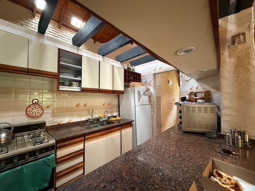 Amplio living cocina comedor, con bajo mesada y alacena.