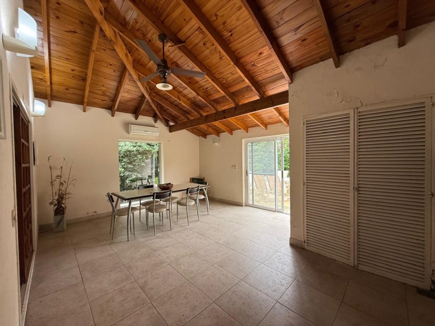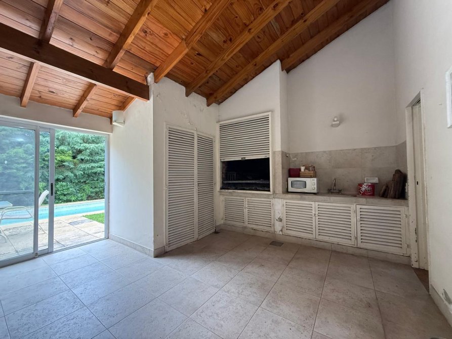 Espacio tipo quincho amplio con parrila y salida al fondo libre con pileta.